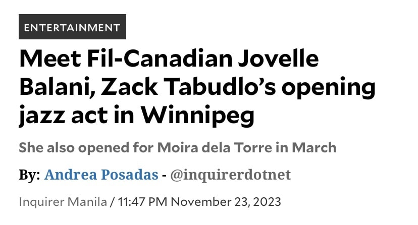 Jovelle Balani is a Filipino-Canadian singer, songwriter, and performing artist. With her soulful voice and unique style, she has been carving a name for herself in the local and international music scene. She draws inspiration from Norah Jones, Amy Winehouse, and Scott Bradlee's Postmodern Jukebox to name a few.